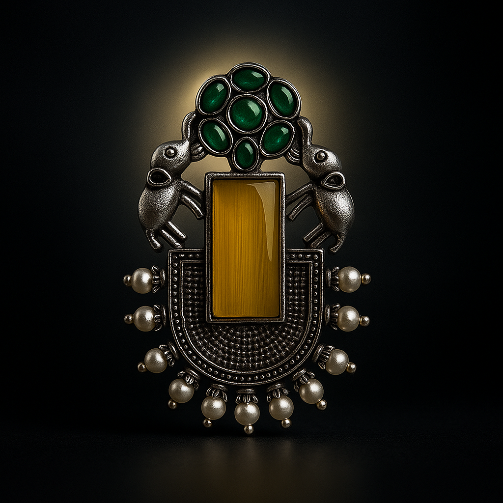 Monalisa Stone Stud Earrings | Premium Oxidized Silver & Pearl Accents